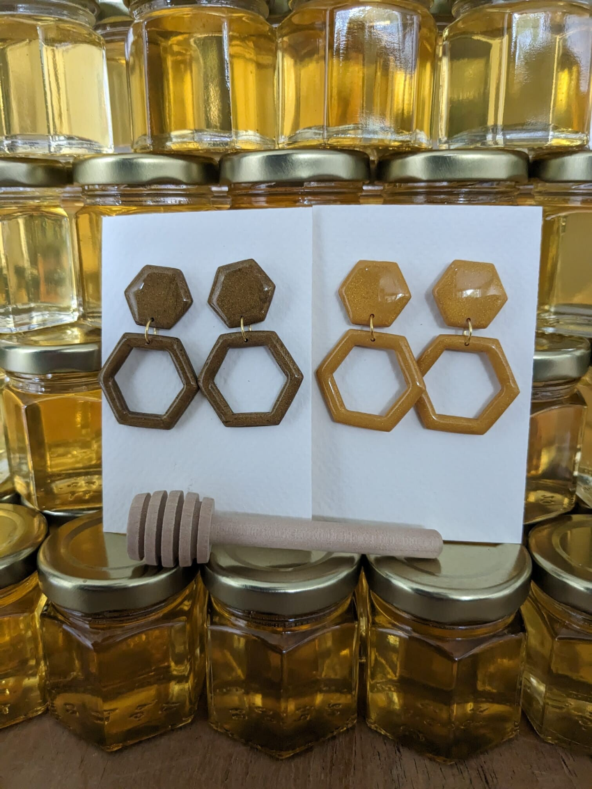 Ik heb me voor deze nieuwe collectie handgemaakte oorbellen laten inspireren door de passie van mijn man nl. bijen en honing. De kleuren en de vormen doen me denken aan de heerlijke goudkleurige honing en honingraten. Het zijn neutrale kleuren die bij heel wat kledingstijlen passen, zowel casual als chique.
