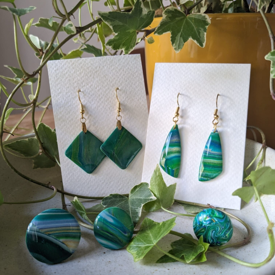 Wist je dat al onze oorbellen volledig met de hand gemaakt zijn? Ook deze oorbellen zijn gemaakt van verschillende soorten klei.