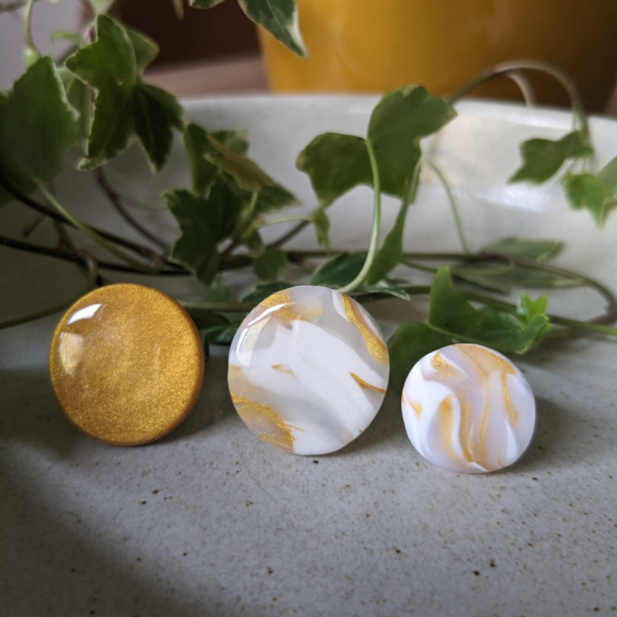 Deze ringen zijn afgewerkt met een laagje hars waardoor ze een mooie glans krijgen.