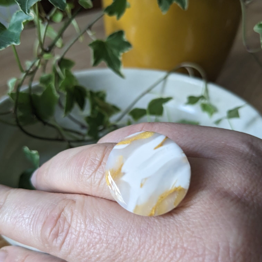 Deze hippe en trendy ringen zijn met vele outfits te combineren. Ze zijn volledig met de hand gemaakt van verschillende soorten polymeerklei. Het voordeel van dit materiaal is dat het ultralicht van gewicht is en zeer aangenaam is om te dragen. De ringen blijven mooi op hun plaats zitten.