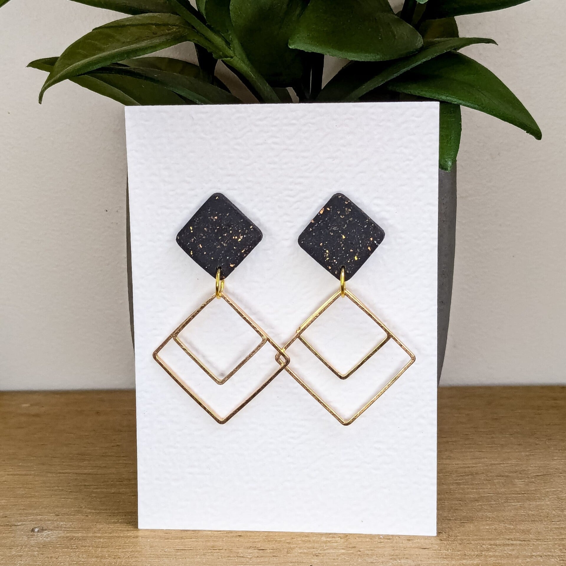kleine zwarte vierkantjes met vierkante bedeltjes