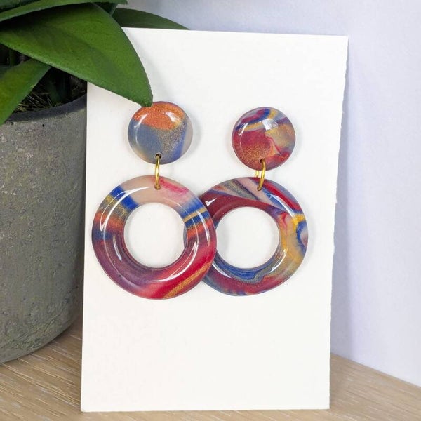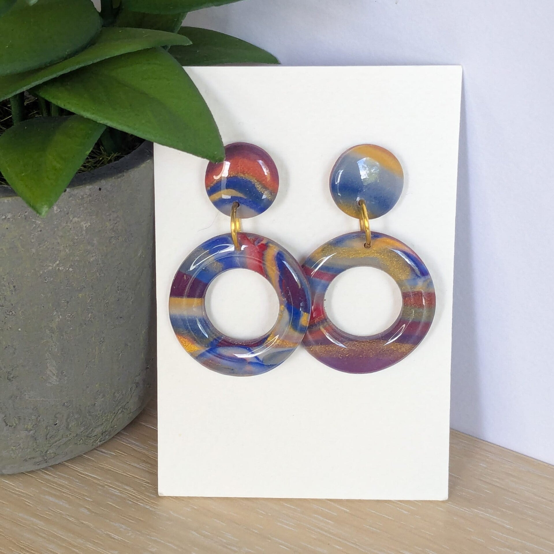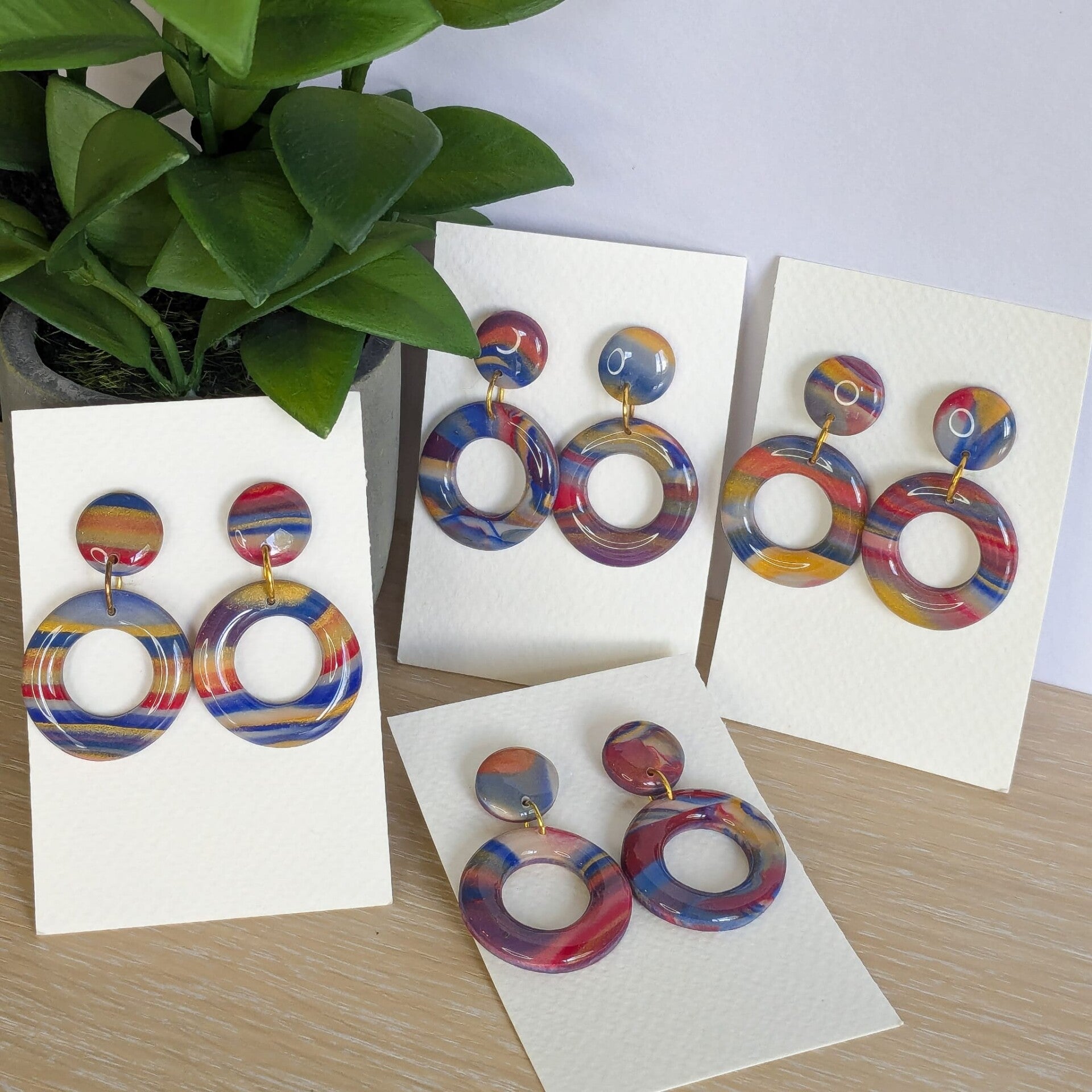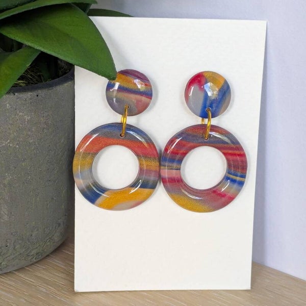 deze kleurrijke rondjes zijn afgewerkt met een laagje hars waardoor ze een mooie glans hebben.