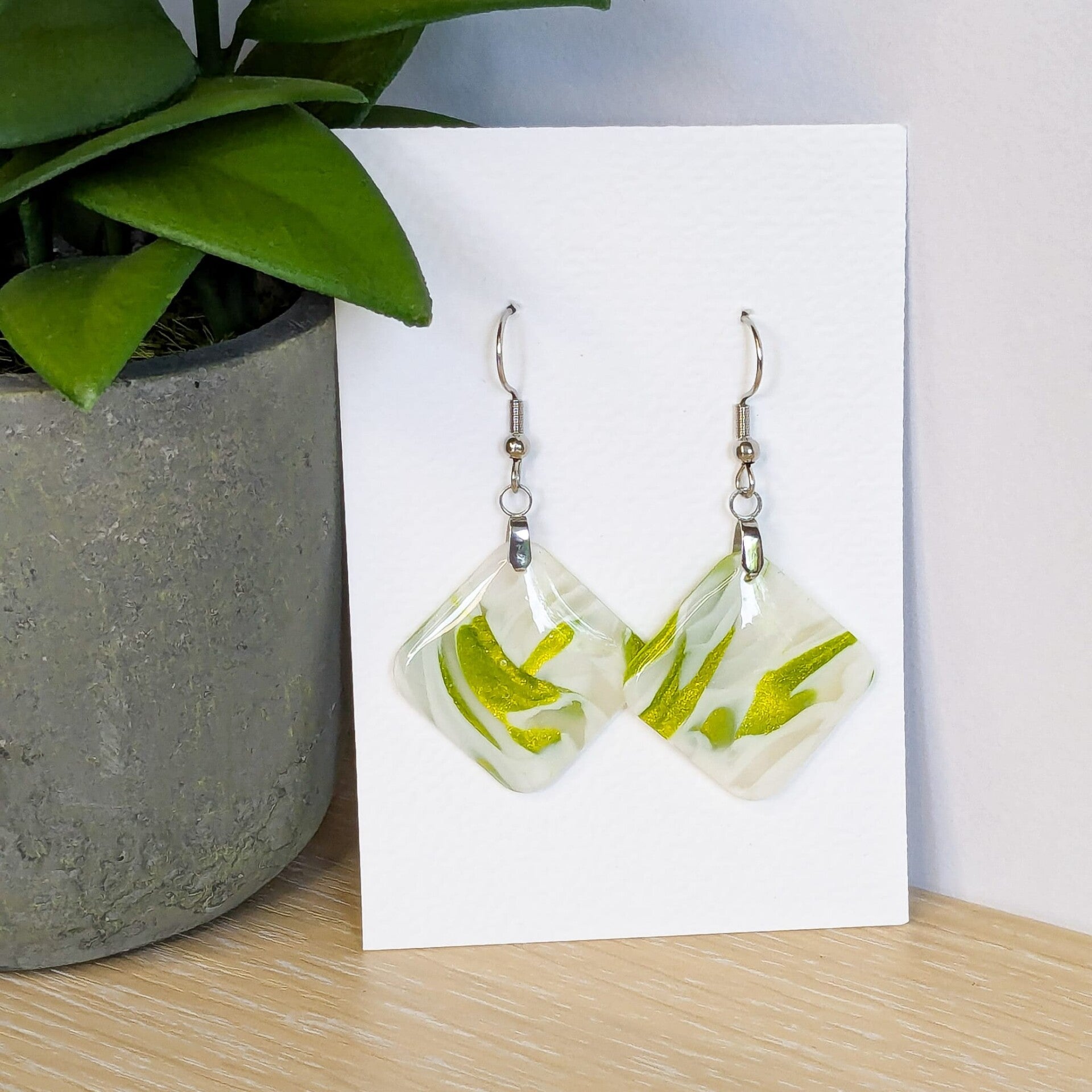 Deze stijlvolle oorbellen zijn afgewerkt met een laagje hars.